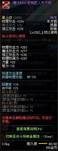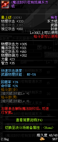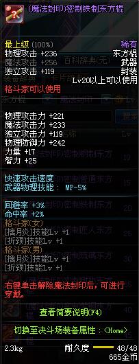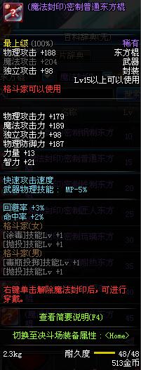 | 15 | (魔法封印)密制普通东方棍 | *Lv13~21普通地下城怪物掉落 *完成[专职贺礼]任务 |