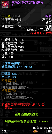 | 35 | (魔法封印)密制耐热东方棍 | *Lv34~41普通地下城怪物掉落 |