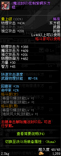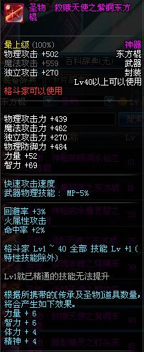 | 40 | 圣物 : 救赎天使之紫铜东方棍 | *Lv39~46普通地下城怪物掉落 |