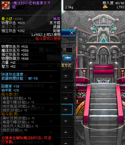 | 50 | (魔法封印)密制格斗东方棍 | *Lv50~56普通地下城怪物掉落 *完成[黑色噩梦投影出来的世界]任务 *使用Lv50~56怪物掉落的设计图进行制作 |