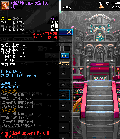 | 65 | (魔法封印)密制武道东方棍 | *Lv65~71普通地下城怪物掉落 *完成[出现的海域]任务 *使用Lv65~71怪物掉落的设计图进行制作 |