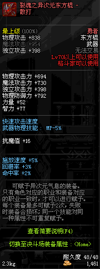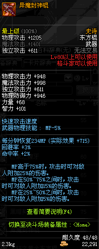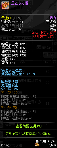 | 70 | 斗战之魂东方棍 | *Lv70~76普通地下城怪物掉落 *在加百利的神秘商店购买 |