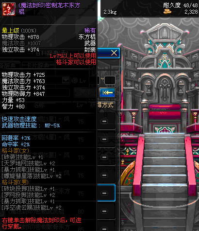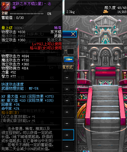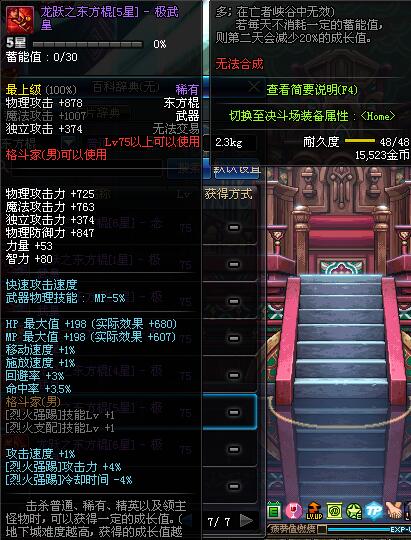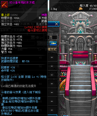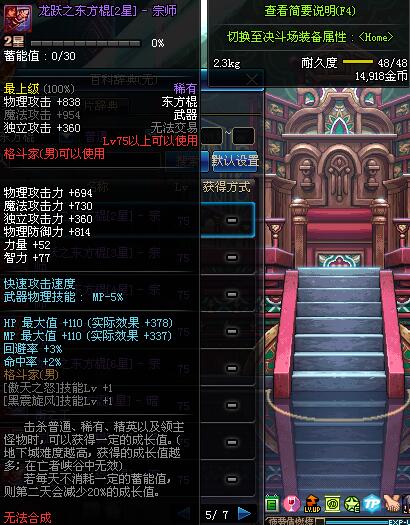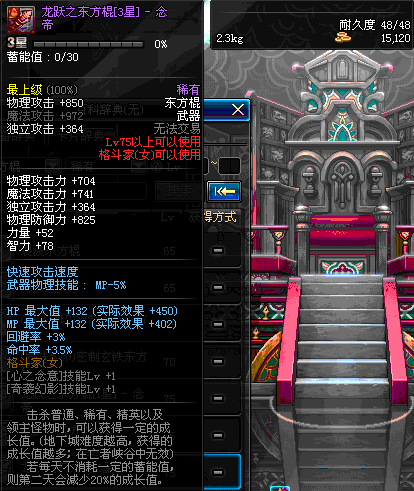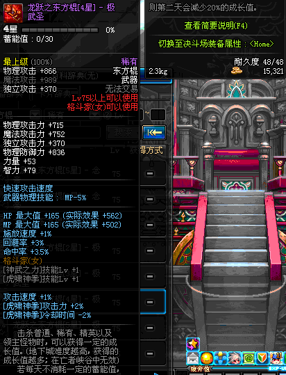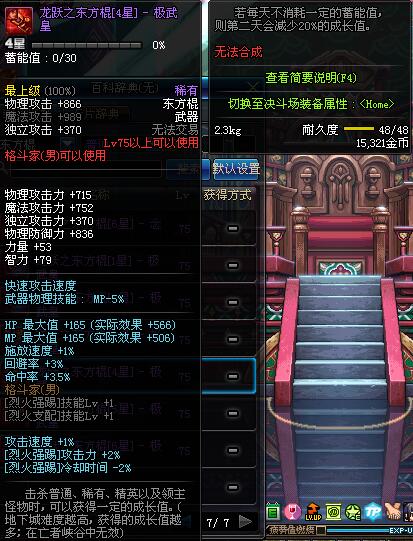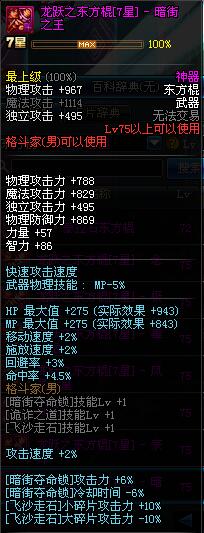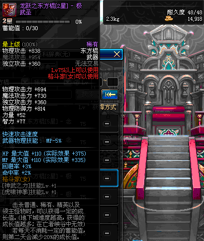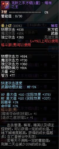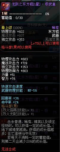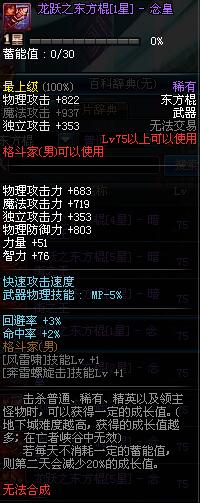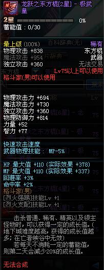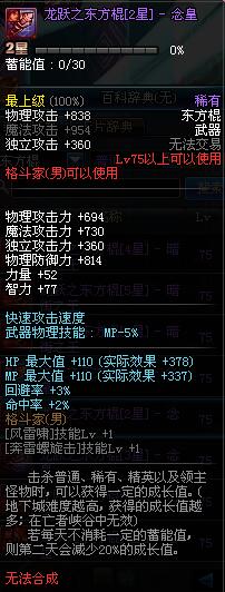 | 75 | 龙跃之东方棍[3星] - 极武圣 | *完成二次觉醒任务后可以从NPC小铁柱处获得此道具。 | ||