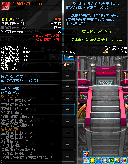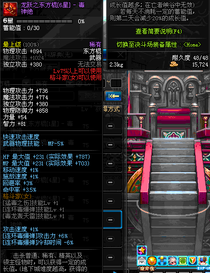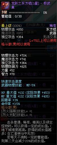 | 30 | 双龙棍 | *Lv29~36普通地下城怪物掉落 *在加百利的神秘商店购买 |