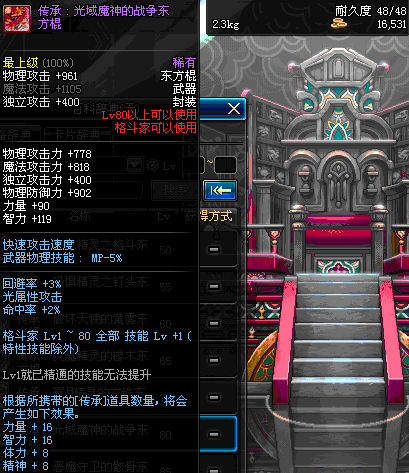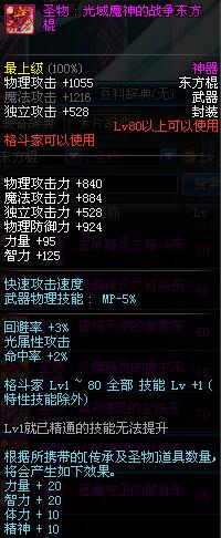 | 80 | 圣物 : 光域魔神的战争东方棍 | *Lv80~86普通地下城怪物掉落 | ||