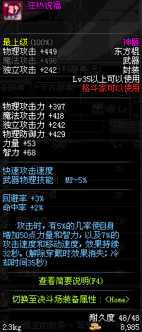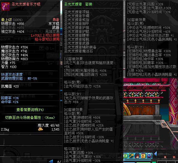 | 辅助装备: | 全职业 鬼剑士 女鬼剑 女格斗 男格斗 神枪手 女枪手 魔法师 男法师 圣职者 暗夜使者 守护者 |
