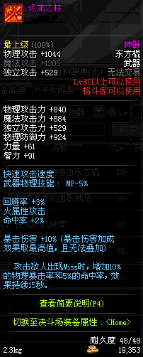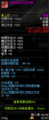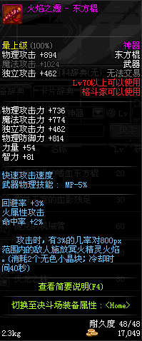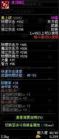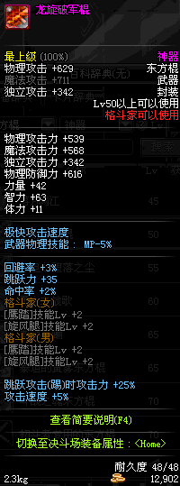 | 50 | 龙旋破军棍 | *Lv50~56普通地下城怪物掉落 *在加百利的神秘商店购买 |