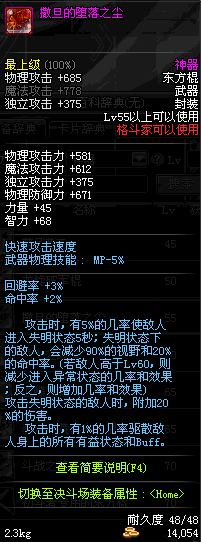 | 55 | 撒旦的堕落之尘 | *Lv53~61普通地下城怪物掉落 *在加百利的神秘商店购买 |