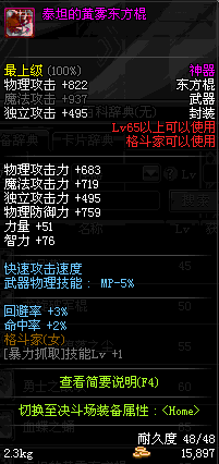| 65 | 泰坦的黄雾东方棍 | *Lv65~71普通地下城怪物掉落 *在加百利的神秘商店购买 |