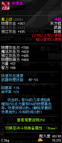 | 75 | 断罪者 | *Lv75~81普通地下城怪物掉落 *在加百利的神秘商店购买 |