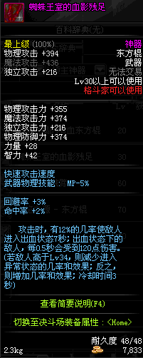 | 30 | 蜘蛛王室的血影残足 | *蜘蛛公主安吉丽娜 掉落(地下城: 蜘蛛王国) *在NPC克伦特的物品店购买(阿拉德陨石×105) |