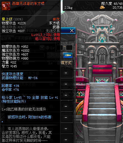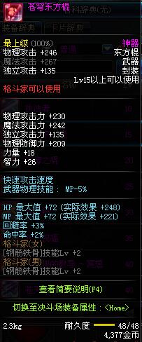 | 15 | 苍穹东方棍 | *Lv13~21普通地下城怪物掉落 *在加百利的神秘商店购买 |