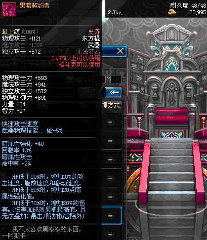 | 20 | 黑暗巨蝎的嗜血东方棍 | *黑色巨蝎莫斯 掉落 (地下城:腐烂之地) *在NPC阿尔伯特·伯恩斯坦的物品店购买(阿拉德陨石×15) |