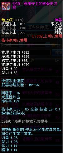 | 85 | 圣物 : 恶魔守卫的骸骨东方棍 | *Lv85~91普通地下城怪物掉落 | ||