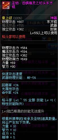 | 50 | 圣物 : 玄冰精灵之格斗东方棍 | *Lv50~56普通地下城怪物掉落 |