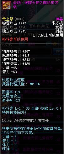 | 35 | 圣物 : 迷踪天使之耐热东方棍 | *Lv34~41普通地下城怪物掉落 |