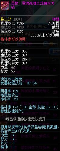 | 30 | 圣物 : 雪魂冰魄之琉璃东方棍 | *Lv29~36普通地下城怪物掉落 |
