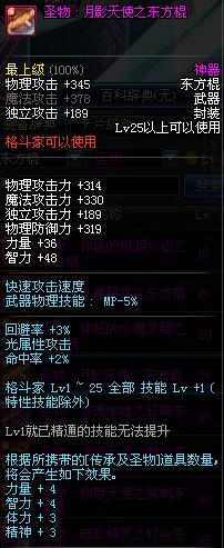 | 25 | 圣物 : 月影天使之东方棍 | *Lv24~31普通地下城怪物掉落 | ||