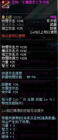 | 15 | 圣物 : 水魔碧灵之东方棍 | *Lv13~21普通地下城怪物掉落 |