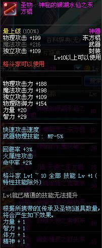 | 20 | 圣物 : 神秘的水魔碧灵之东方棍 | *Lv19~26普通地下城怪物掉落 | ||
