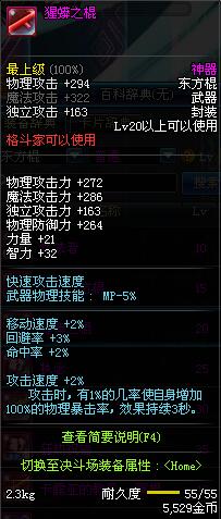 | 55 | 极影天玄棍 | *Lv54~61深渊地下城怪物掉落 *在NPC沉默之克雷娅的物品店购买 |