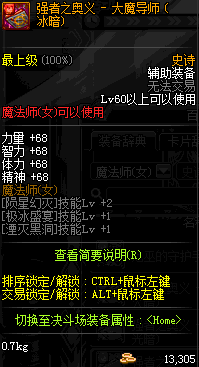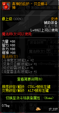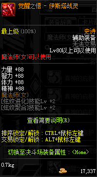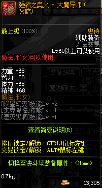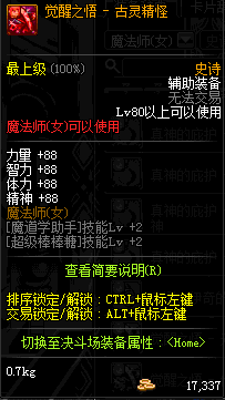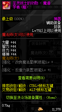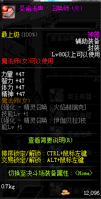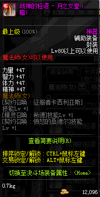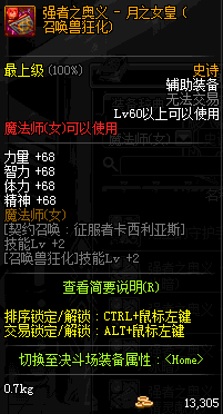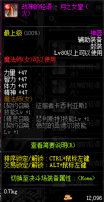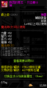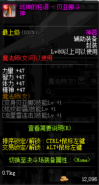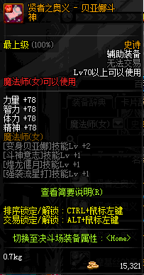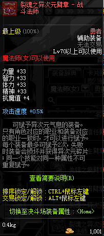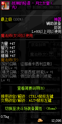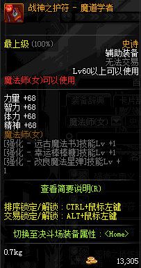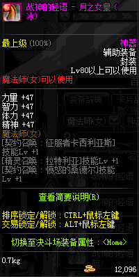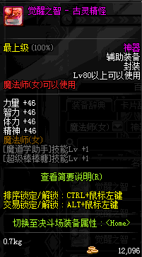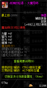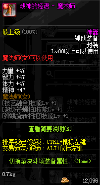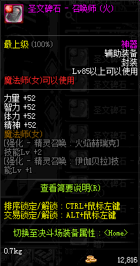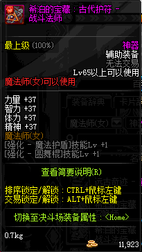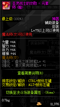 | 辅助装备: | 全职业 鬼剑士 女鬼剑 女格斗 男格斗 神枪手 女枪手 魔法师 男法师 圣职者 暗夜使者 守护者 |