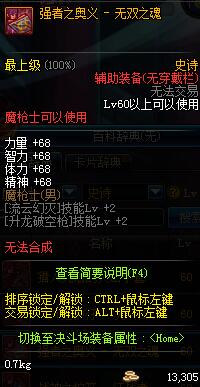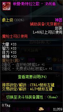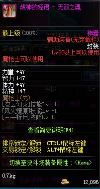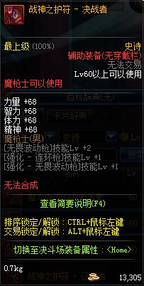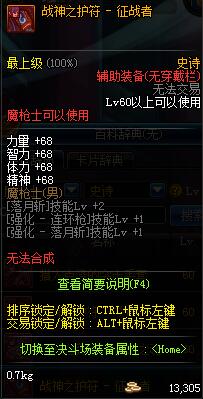| 辅助装备: | 全职业 鬼剑士 女鬼剑 女格斗 男格斗 神枪手 女枪手 魔法师 男法师 圣职者 暗夜使者 守护者 |