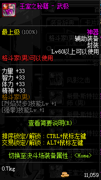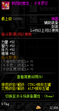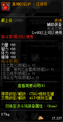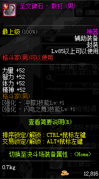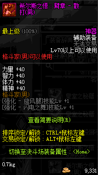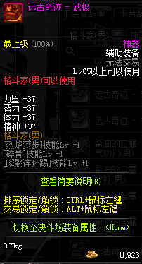 | 辅助装备: | 全职业 鬼剑士 女鬼剑 女格斗 男格斗 神枪手 女枪手 魔法师 男法师 圣职者 暗夜使者 守护者 |