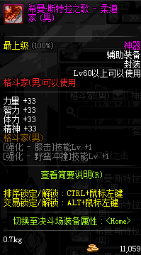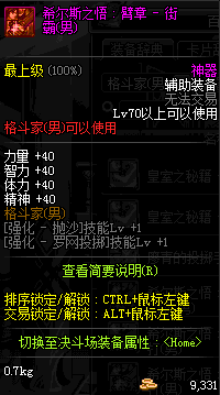| 鬼剑士 | 神枪手 | 格斗家 | 魔法师 | 圣职者 | 暗夜使者 | 布甲 | 皮甲 | 重甲 | 轻甲 | 板甲 | 饰品 |