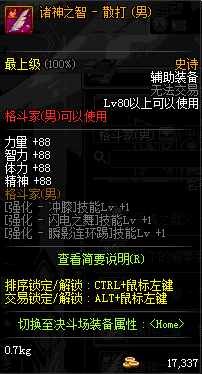 | 史诗 辅助装备- 格斗家(男) | ||||