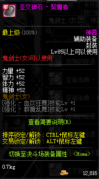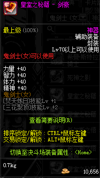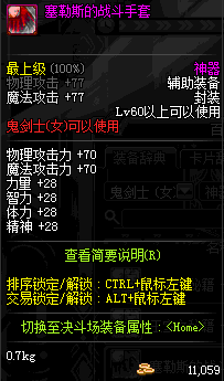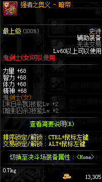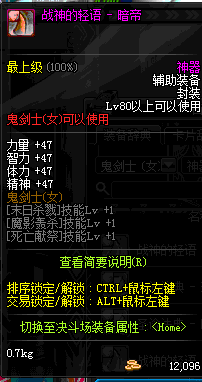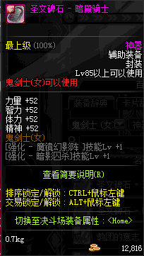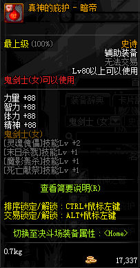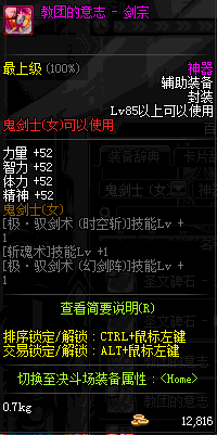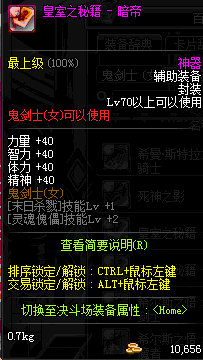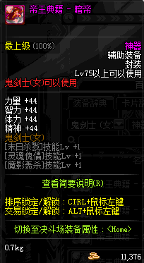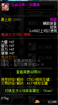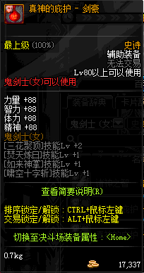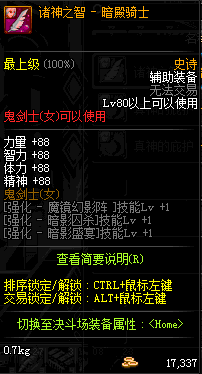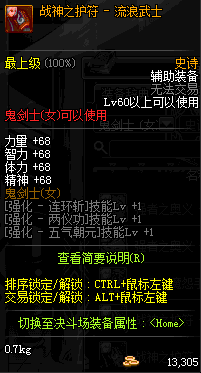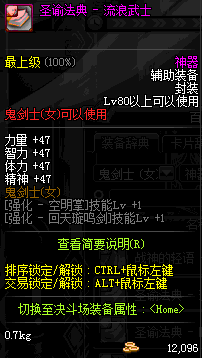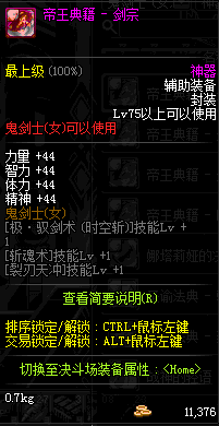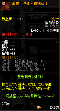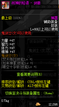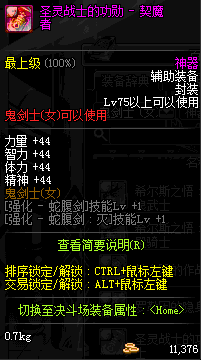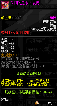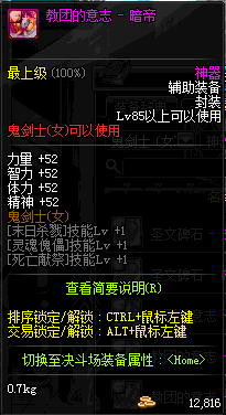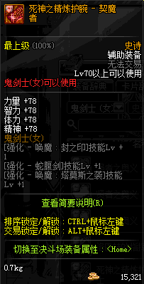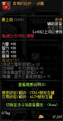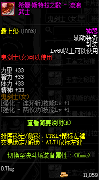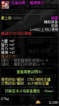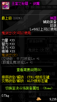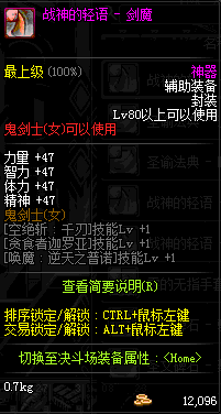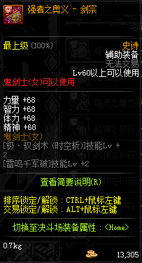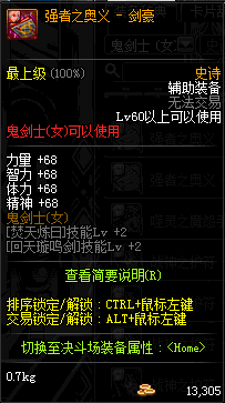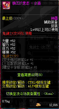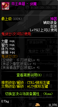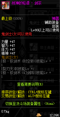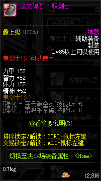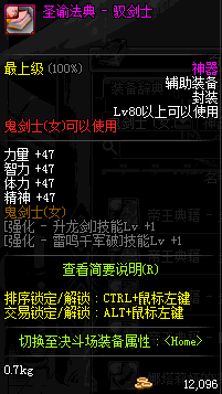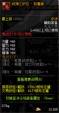 | 辅助装备: | 全职业 鬼剑士 女鬼剑 女格斗 男格斗 神枪手 女枪手 魔法师 男法师 圣职者 暗夜使者 守护者 |