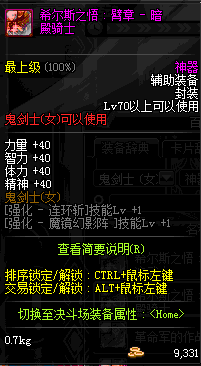 | 神器 辅助装备-鬼剑士(女) | ||||