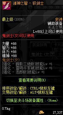 | 史诗 辅助装备-鬼剑士(女) | ||||