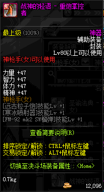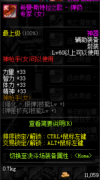 | 辅助装备: | 全职业 鬼剑士 女鬼剑 女格斗 男格斗 神枪手 女枪手 魔法师 男法师 圣职者 暗夜使者 守护者 |