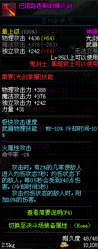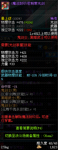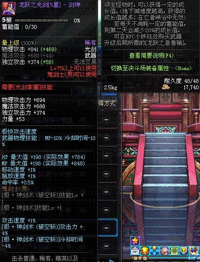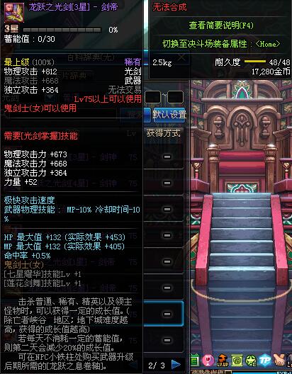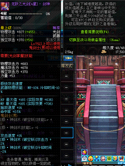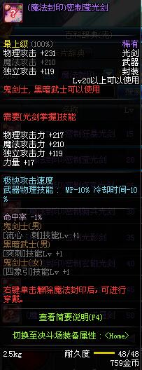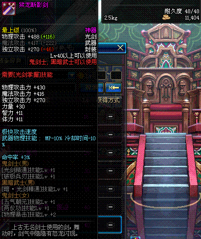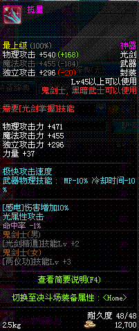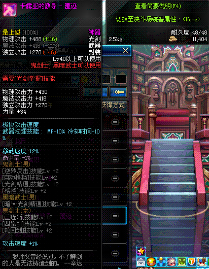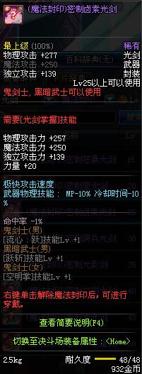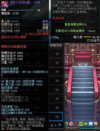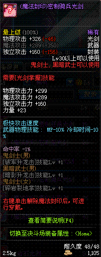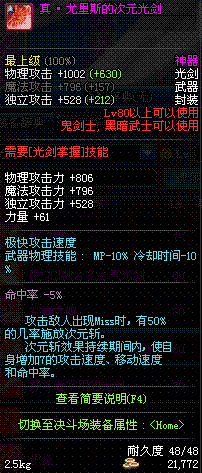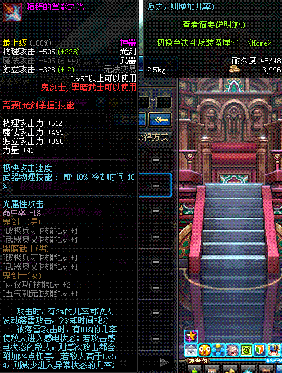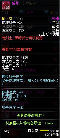 | 50 | 双龙魔影剑 | *Lv50~56普通地下城怪物掉落 *在加百利的神秘商店购买 |