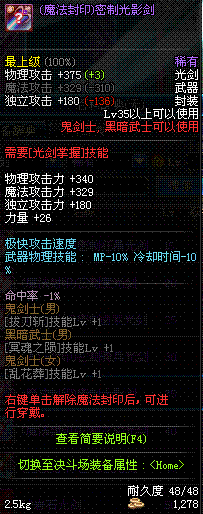 | 35 | (魔法封印)密制光影剑 | *Lv34~41普通地下城怪物掉落 |