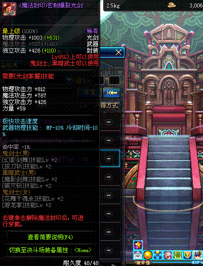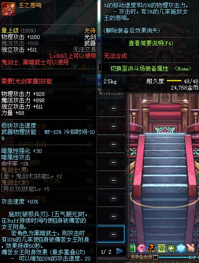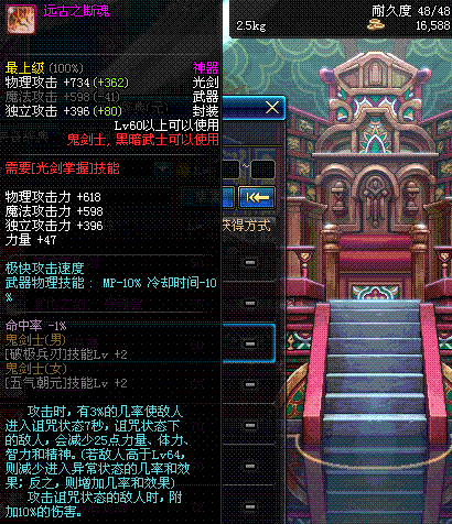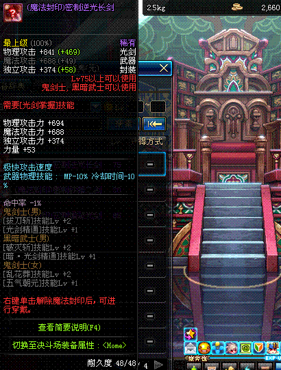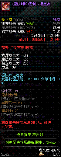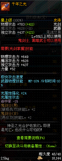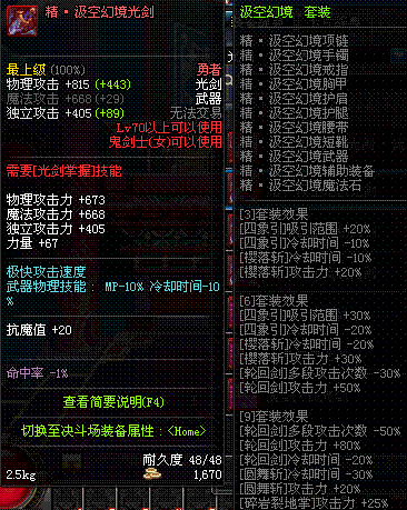 | 辅助装备: | 全职业 鬼剑士 女鬼剑 女格斗 男格斗 神枪手 女枪手 魔法师 男法师 圣职者 暗夜使者 守护者 |