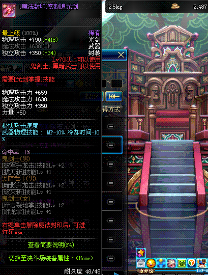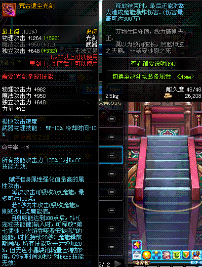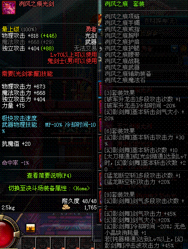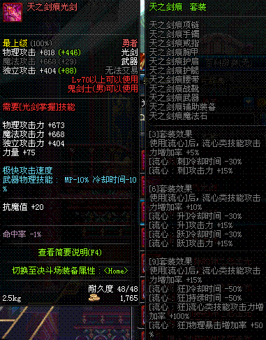 | 70 | 天痕秘印光剑 | *Lv70~76普通地下城怪物掉落 *在加百利的神秘商店购买 |