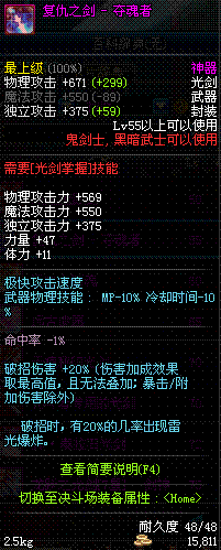 | 55 | 复仇之剑 - 夺魂者 | *Lv53~61普通地下城怪物掉落 *在加百利的神秘商店购买 |