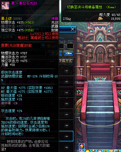 | 72 | 真·泰拉石光剑 | * 设计图(70LV以上普通地下城 登场的NPC加百利 出售) *泰拉石光剑 → 用远古神器装备进化书升级(NPC船长鲁特 出售) |