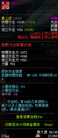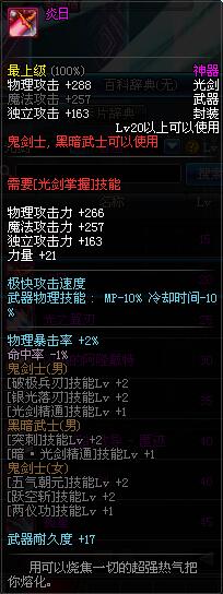 | 55 | 圣物 : 极炎精灵之光影剑 | *Lv53~61普通地下城怪物掉落 |