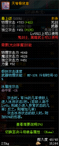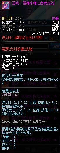 | 25 | 圣物 : 雪魂冰魄之卤素光剑 | *Lv24~31普通地下城怪物掉落 | ||