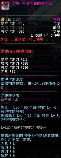| 60 | 圣物 : 守望天使的凝光剑 | *Lv58~66普通地下城怪物掉落 |