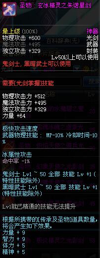 | 50 | 圣物 : 玄冰精灵之朱诺星剑 | *Lv50~56普通地下城怪物掉落 |