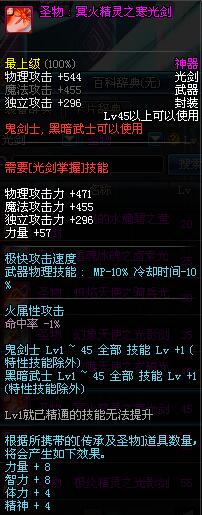 | 45 | 圣物 : 冥火精灵之寒光剑 | *Lv45~51普通地下城怪物掉落 |