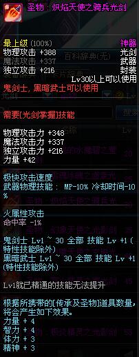 | 30 | 圣物 : 炽焰天使之骑兵光剑 | *Lv29~36普通地下城怪物掉落 |