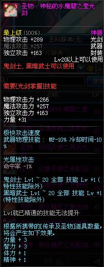 | 20 | 圣物 : 神秘的水魔碧之莹光剑 | *Lv19~26普通地下城怪物掉落 | ||