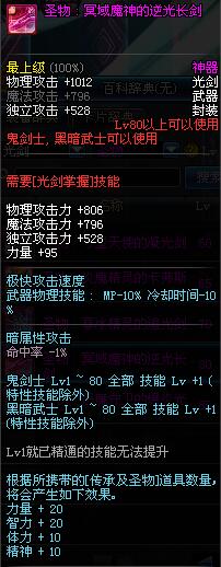 | 80 | 圣物 : 冥域魔神的逆光长剑 | *Lv80~86普通地下城怪物掉落 | ||