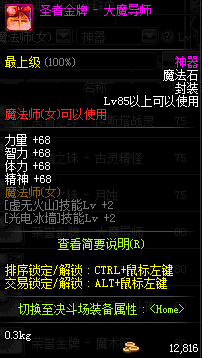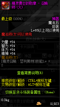 | 辅助装备: | 全职业 鬼剑士 女鬼剑 女格斗 男格斗 神枪手 女枪手 魔法师 男法师 圣职者 暗夜使者 守护者 |