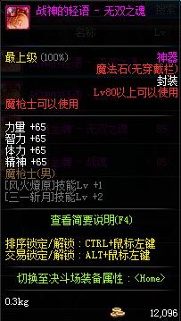 | 辅助装备: | 全职业 鬼剑士 女鬼剑 女格斗 男格斗 神枪手 女枪手 魔法师 男法师 圣职者 暗夜使者 守护者 |